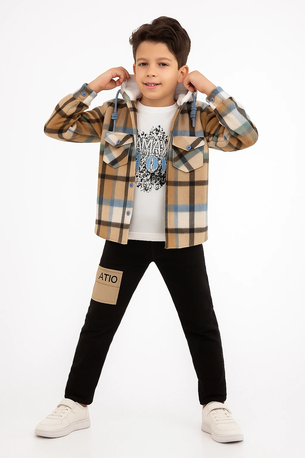 توينز أولادى مستورد قميص جوخ وتيشرت قطن سنجل ليكرا ( قطن 100% ) ( لون بيج فى اسود ) خامة عالية الجود